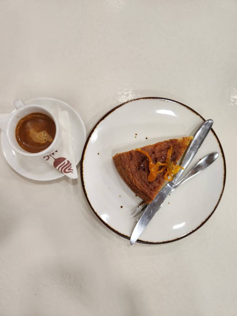 An exceptional combination was ordered by my friend – An Espresso and an Orange cake. When it comes to an elevation, what can highlight coffee better than orange ?