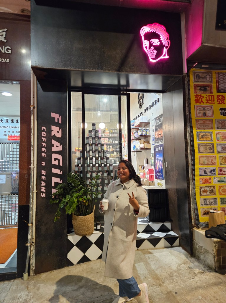 Similar was the case when we laboriously made our way to Hong Kong Peak, somewhere half way through the steep roads and stairs, to buy coffee from Fragile Coffee Beans. But the coffee shop was shut! They closed early, it seemed.